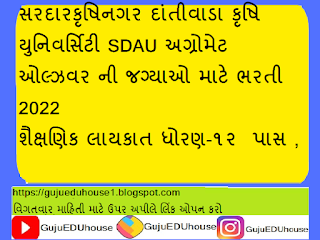 સરદારકૃષિનગર દાંતીવાડા કૃષિ યુનિવર્સિટી SDAU અગ્રોમેટ ઓલ્ઝવર ની જગ્યાઓ માટે ભરતી 2022